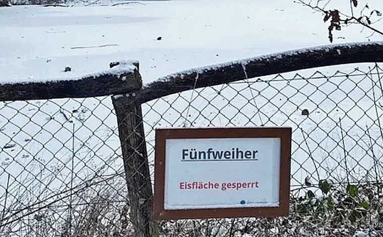 Fünfweiher Während anhaltende Minusgrade vielerorts für winterliche Stimmung sorgen und sich rundum erste Eisflächen bilden, bleibt der Fünfweiher in Lenzburg weiterhin gesperrt. Die Eisdecke ist noch nicht ausreichend tragfähig, weshalb das Betreten aus Sicherheitsgründen verboten ist. Der Werkhof Lenzburg beobachtet die Entwicklung der Eisstärke laufend und informiert, sobald ein sicheres Eislaufen möglich ist, teilt die Stadt auf ihrer Website mit. Anders präsentiert sich die Lage etwa in Othmarsingen: Dort ist das Natureisfeld im Wald dank der tiefen Temperaturen bereits wieder befahrbar. (rsc)